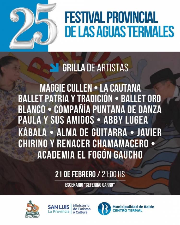 También se presentarán el ballet Patria y Tradición, Oro Blanco, la Compañía Puntana de Danza, la academia El Fogón Gaucho y Los Titanes de La Sajuriana.