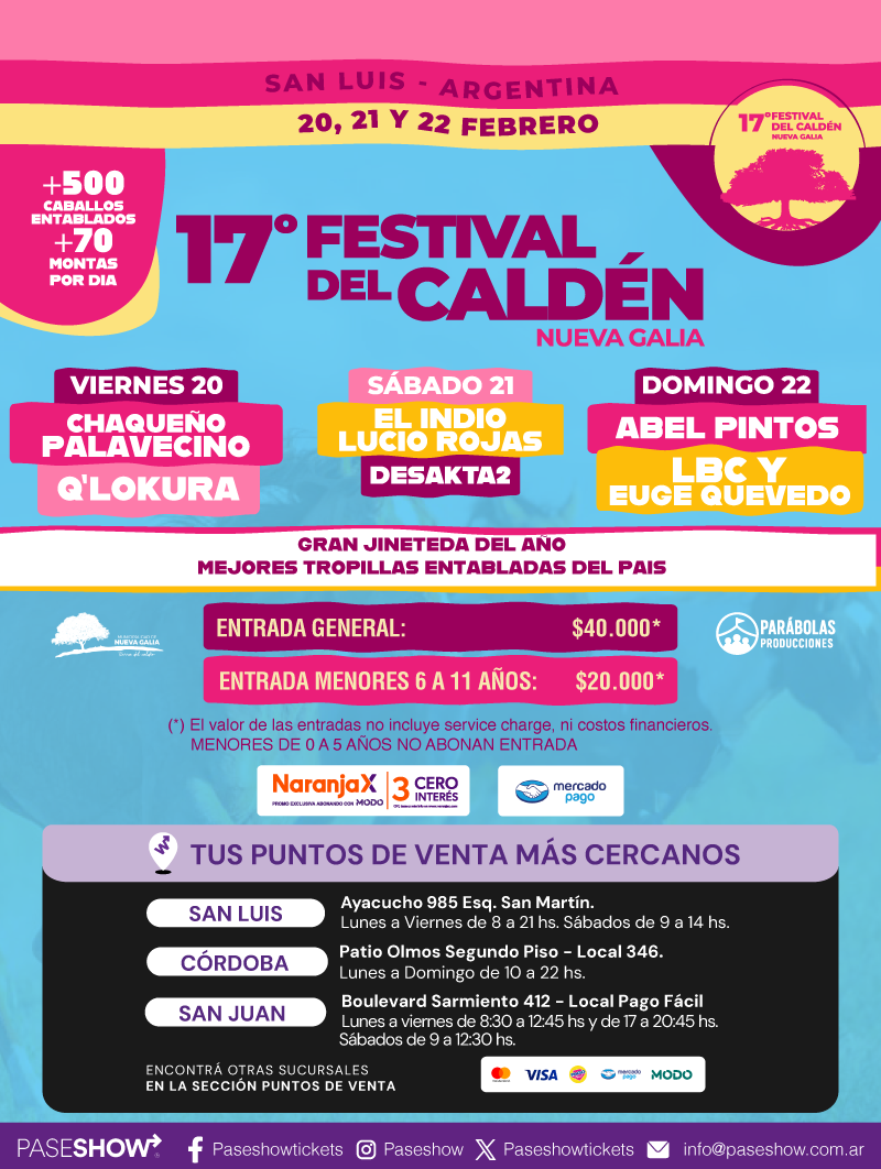 Las entradas tienen un valor de $40.000 para mayores de 12 años, $20.000 de 6 a 11 años y sin cargo hasta los 5 años. Se adquieren en www.PASESHOW.com.ar y puntos oficiales en San Luis, Córdoba y San Juan.