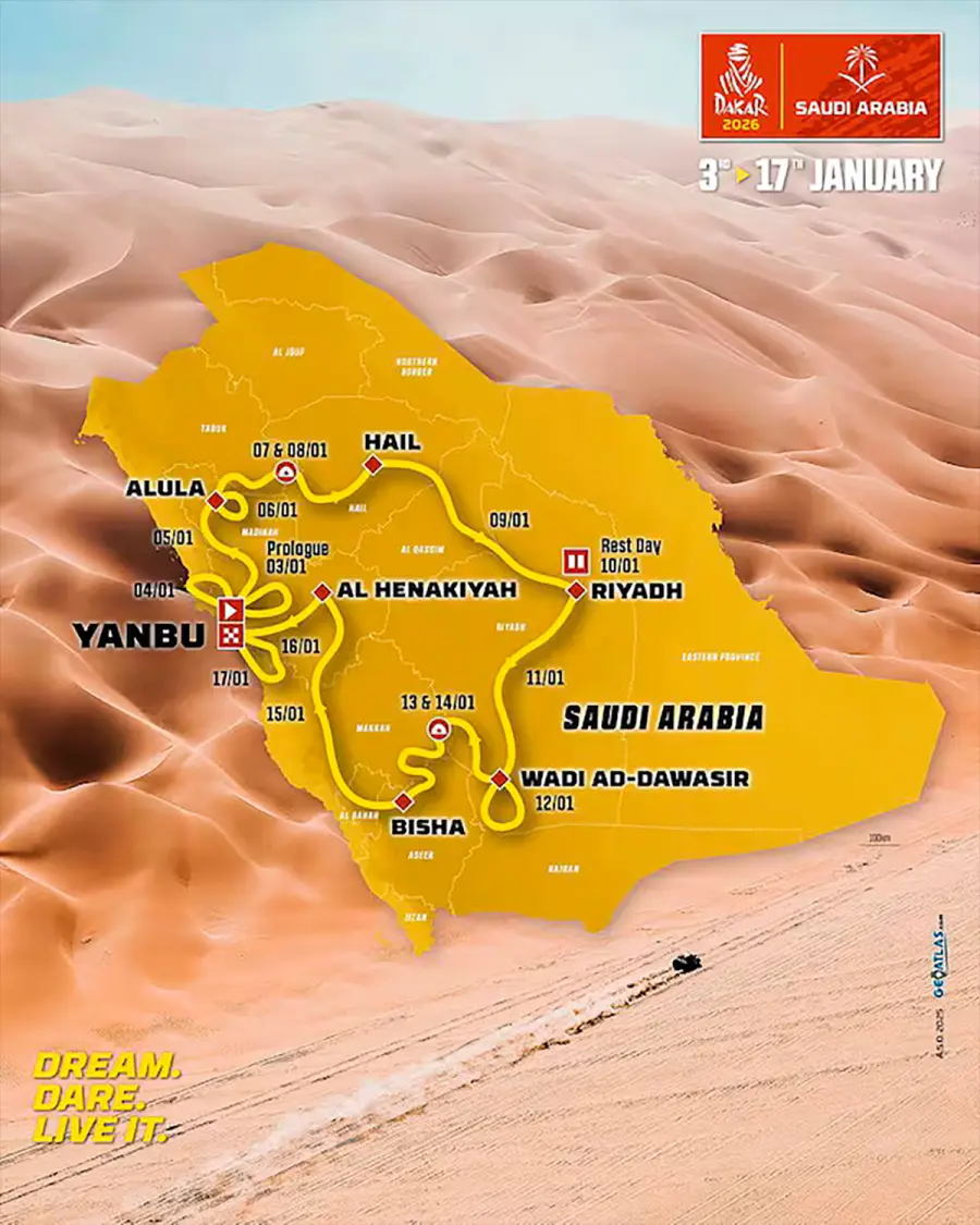 El Rally Dakar 2026 comenzará el próximo 3 de enero y se extenderá hasta el 17, con Arabia Saudita como escenario por sexto año consecutivo. Será la 48ª edición de la competencia más exigente del automovilismo mundial y, una vez más, marcará el inicio del Campeonato Mundial de Rally-Raid, fiscalizado por la FIA y la FIM.