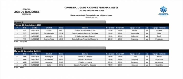 El nuevo torneo clasificatorio al Mundial 2027 arranca este viernes. Argentina debuta ante Paraguay en Buenos Aires por la Liga de las Naciones Femenina CONMEBOL.