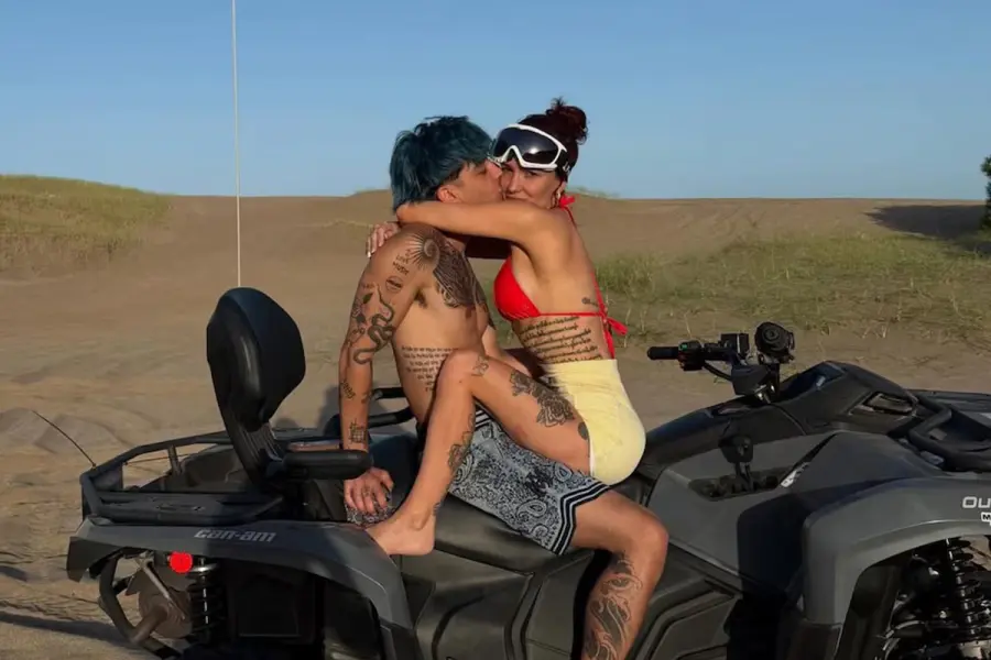 La playa bonaerense fue el marco ideal para esta escapada romántica. Entre dunas, sol y mar, los artistas se mostraron relajados y enamorados, dejando postales que rápidamente se viralizaron. En algunas de las fotos más comentadas, se los ve abrazados y besándose a través de la ventanilla de un todoterreno gris, mientras que en otras posan sobre un cuatriciclo negro, con looks descontracturados y bien veraniegos.