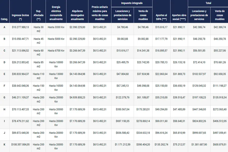 Estos valores representan los límites máximos de facturación anual permitidos para permanecer dentro del régimen, actualizados de acuerdo a los parámetros semestrales establecidos por la normativa vigente.