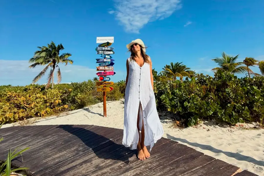 Las imágenes, tomadas sobre la arena blanca de Costa Mujeres, reflejan una estética descontracturada pero cuidada al detalle. El cabello suelto, al viento, y unos anteojos de sol negros de formato ovalado completaron un conjunto simple y elegante, ideal para disfrutar de un día de playa sin resignar estilo.