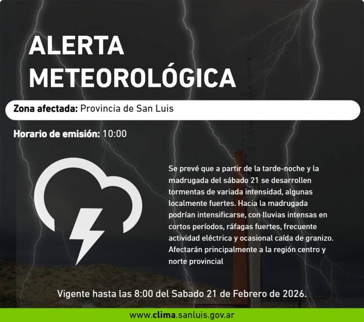 San Luis: tres días frescos, lluvias y tormentas hasta el domingo