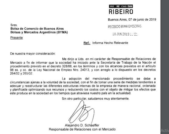 Fundada en 1910 en la localidad de Villa Mercedes, Ribeiro tuvo una rápida expansión con el auge del consumo durante lo que va del siglo, llegando a facturar 5.000 millones de pesos gracias a sus más de 80 sucursales distribuidas en la mayoría de las provincias argentinas.