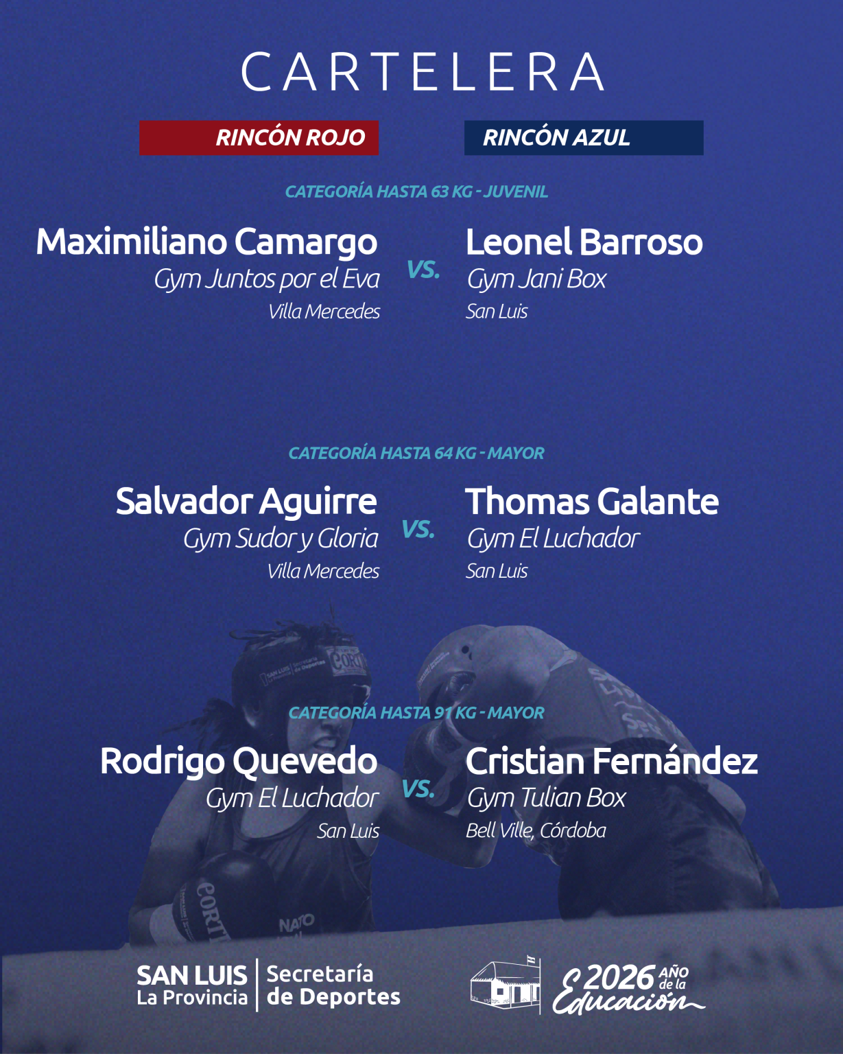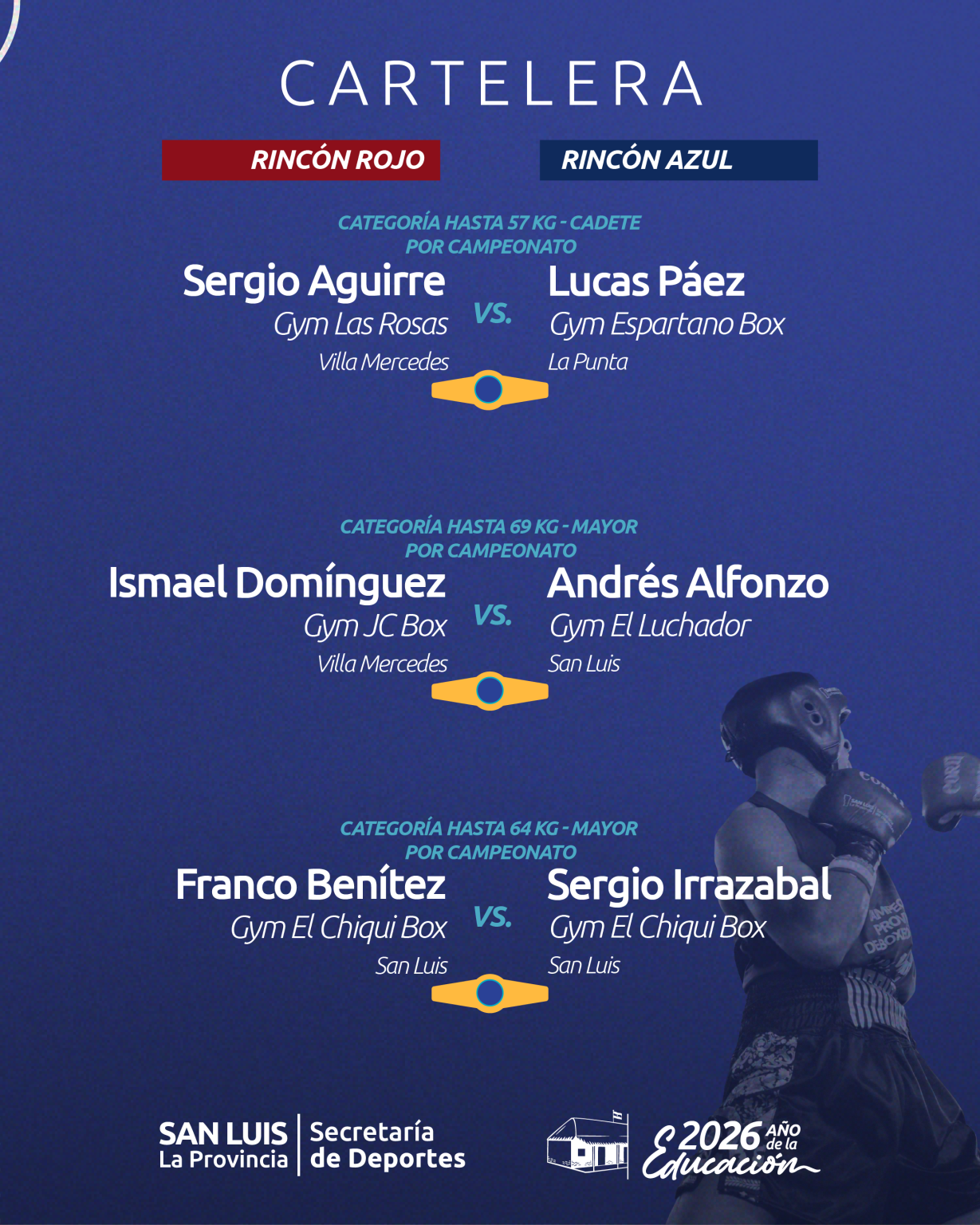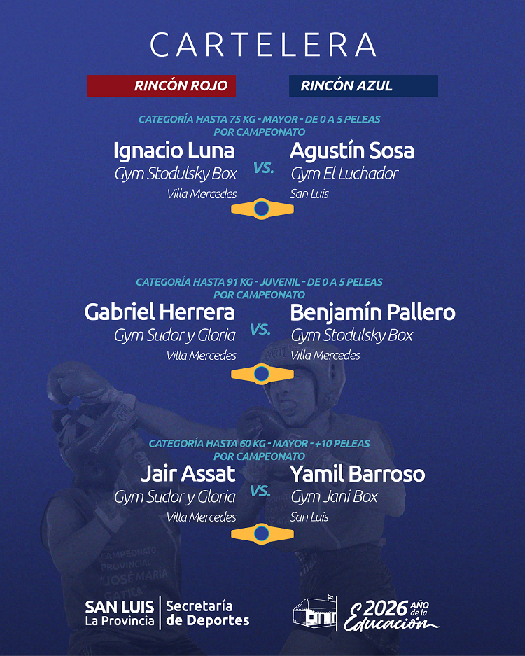 La ciudad de Villa Mercedes será sede este viernes 20, desde las 20:00, de la primera fecha del Campeonato Provincial de Boxeo Amateur ‘José María Gatica’ 2026. La velada se desarrollará en el Palacio Municipal de los Deportes con entrada libre y gratuita.