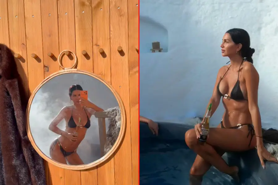 El escenario elegido fue Valtellina, una región ubicada en el norte de Italia donde se desarrollan actividades oficiales del evento deportivo internacional. Allí, Zaira mostró distintos looks invernales, aunque una de sus imágenes fue la que más repercusión generó: un simple bikini negro, posando al aire libre con un iglú de fondo, sin importar el frío extremo del lugar.