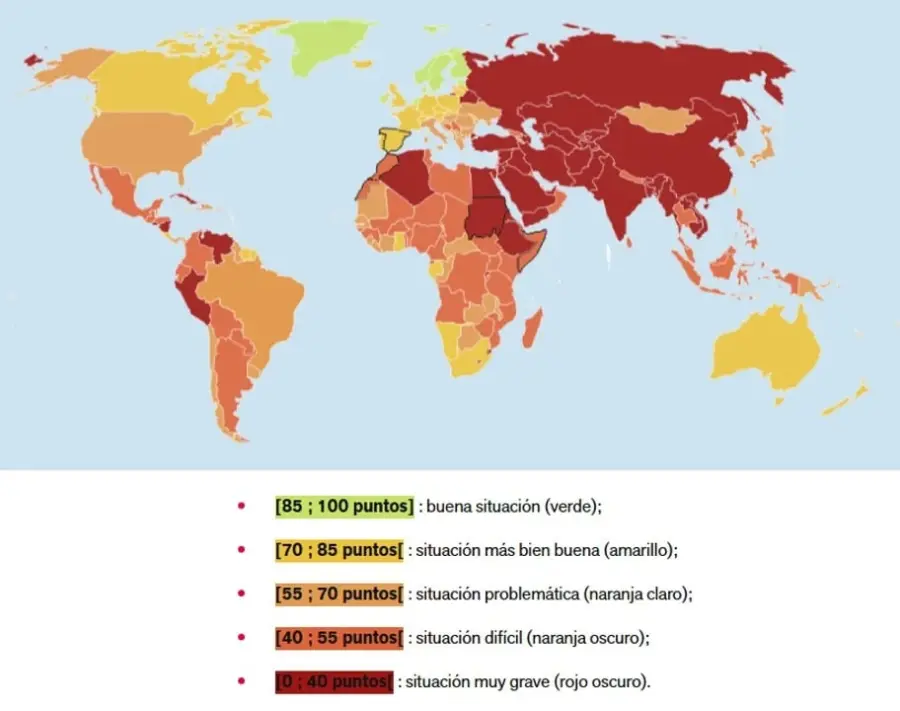 El relevamiento señala que más del 52% de los países se encuentran en una situación “difícil” o “muy grave”, una cifra que marca un fuerte deterioro en comparación con 2002, cuando ese grupo representaba apenas el 13,7%.