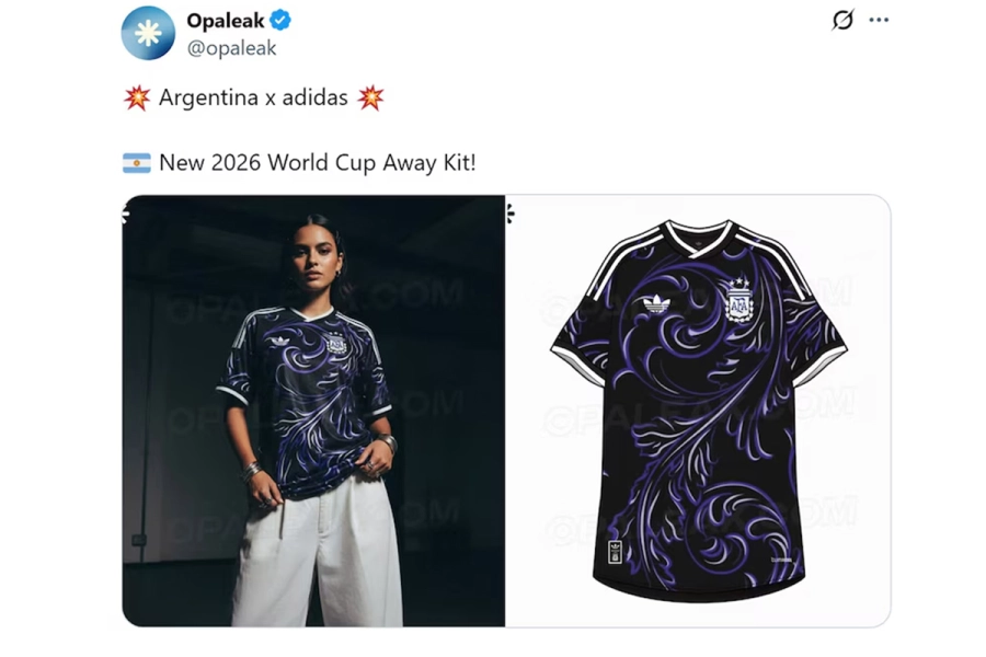 Opaleak filtró la posible camiseta suplente de Argentina para el Mundial 2026: negro, blanco y toques violáceos reemplazarían al violeta de Qatar.