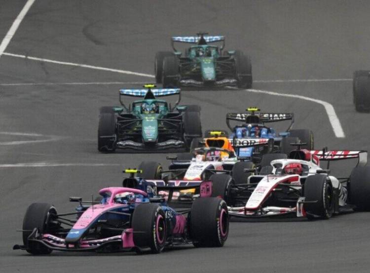 Sin embargo, apenas regresó a pista se produjo un incidente en la primera curva, cuando Esteban Ocon intentó superarlo y terminó tocando el Alpine, lo que provocó un trompo para ambos pilotos.