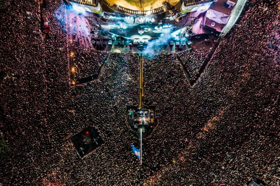 Las imágenes aéreas mostraron una postal impactante del público concentrado en el parque a la vera del río Paraná, extendiéndose por varias cuadras del centro rosarino.