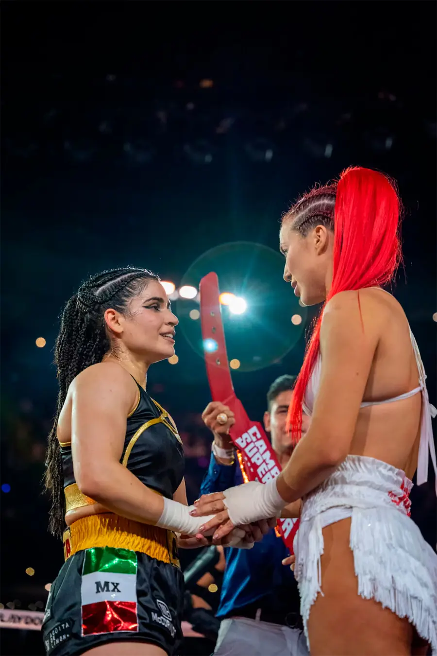 La previa había estado marcada por la tensión durante el pesaje del 25 de abril, con gestos desafiantes entre ambas competidoras. Sin embargo, en un gesto que sorprendió al público, Vigna y Flores se abrazaron antes del combate, descomprimiendo el clima y aportando una señal de respeto mutuo.