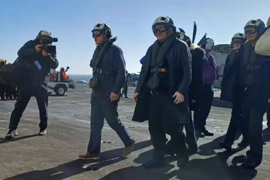El Presidente partió desde Aeroparque y fue trasladado en un avión Grumman C-2 Greyhound, diseñado para operar en portaaviones, con aterrizaje directo sobre la cubierta del USS Nimitz.